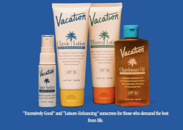 Imagine a sunscreen that takes leisure as seriously as it takes protection. Where the best in modern skincare science meets a sensorial experience that is designed to transport you to paradise. Introducing Vacation® — “Excessively Good” and “Leisure-Enhancing” sunscreen for those who demand the best from life.